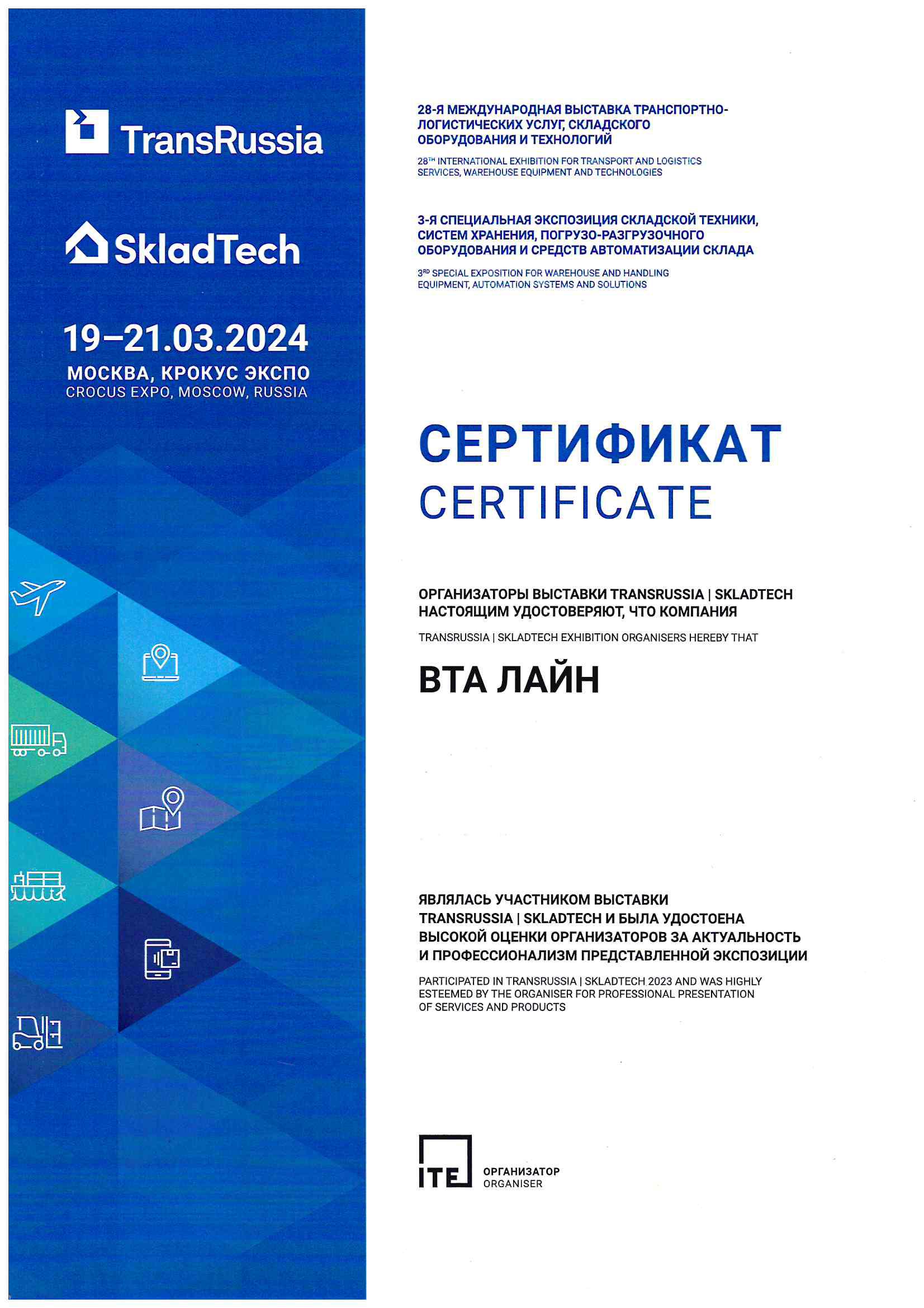 ВТА Лайн есть чем гордиться в плане профессиональных достижений. Безусловно, это отзывы наших клиентов, и конечно награды и признание в сфере логистики на всероссийском и международном уровнях.